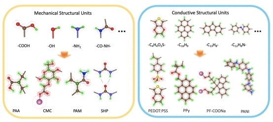 图3. 硅基负极粘结剂中具有代表性的力学和导电结构基元