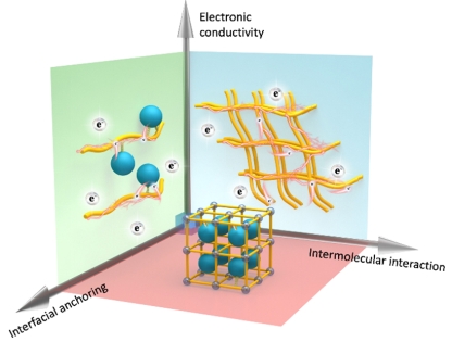 团队的重要创新是将导电高分子粘结剂维持稳定的硅负极导电网络策略分为两类:(1)保护一级导电网络,提高整个电极的机械稳定性。这主要是通过粘结剂的机械性能将导电剂(例如碳纳米管和乙炔黑)与硅基颗粒结合构成的宏观尺度上的导电网络,电子的传输通过导电剂与硅基颗粒之间的物理接触形成电子渗流;(2)构建分子尺度的二次导电网络。这主要是利用导电粘结剂与硅基颗粒化学键连接构成界面分子尺度的电子耦合形成微观导电网络,成为硅基活性物质颗粒表面的分子级导电层。从电子传输的角度来看,一级导电网络允许更快的电子流动,二次导电网络是把电子有效地快速地传递到硅基颗粒,从而提升负极的能量密度和功率密度。