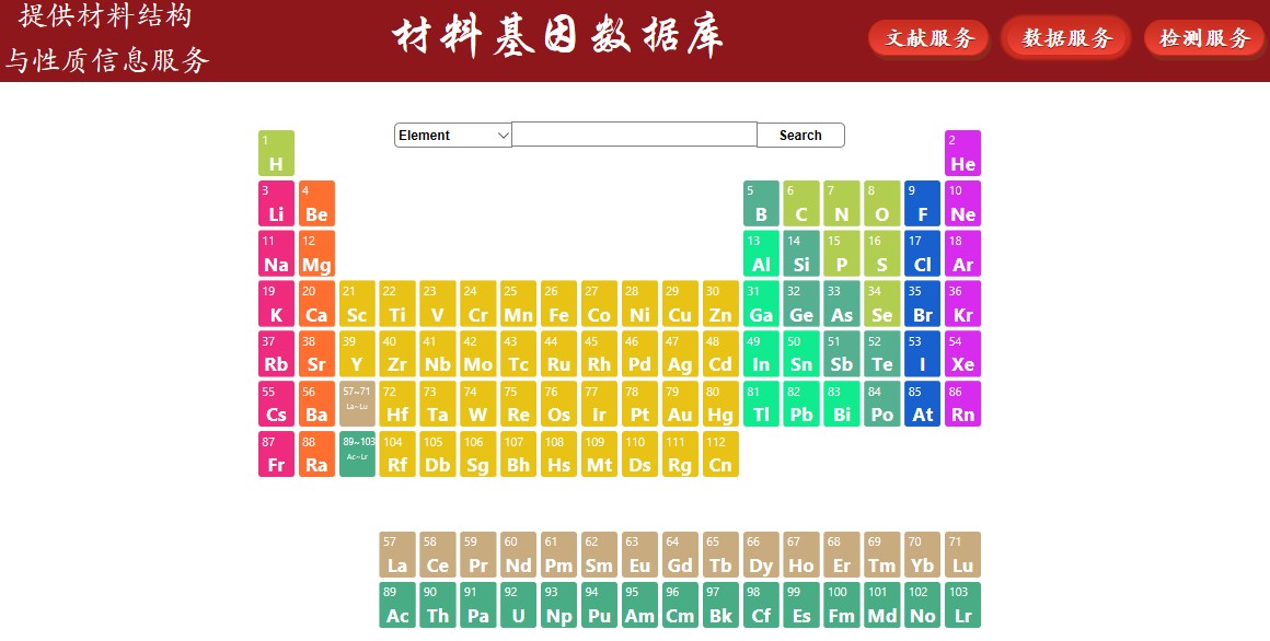 数据服务是基于已经建立的70多万种晶体结构和百万条物理化学性质数据的“材料基因数据”体系(目标是建立世界最完备的材料基因数据库),方便科研创新者搜索材料晶体结构与其相关的电子结构和性质。此外,通过对社会公众开放,具有很强的科普功能。虽然目前国外已经有几家材料大数据网站,“北大新材料”的特色是不仅具有较完备材料数据库,还具有大量基于自主开发的高通量电子结构计算的新数据,例如使用基于自主优化的杂化密度泛函(HSE)快速计算方法,得到了1万5千种晶体的电子结构数据,比世界范围内其他公开数据库提供更准确的材料能带和态密度数据,对推动新材料的应用具有重要的意义。