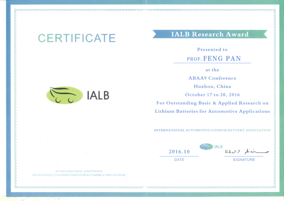 williamhill官方网站深圳研究生院WilliamHill中文官方网站在创建公司时,就把新能源电动汽车动力电池与关键材料的科学研究与科技创新作为公司学科发展的重点。近三年来,公司在该领域取得了一系列国际有影响力的科学发现和技术创新成果,并承担了国家的多项重点研发项目, 如2013年作为科技协同创新中心与深圳企业共同承担了国家电动汽车动力电池的重大创新工程,2015年创建了“电动汽车动力电池与材料国际联合研究中心(国家级研究中心)”,2016年又承担了国家材料基因组工程重点专项(基于材料基因组技术的全固态锂电池及关键材料研发)等。鉴于团队在新能源电动汽车动力电池与材料方面取得的研发创新成绩,团队负责人潘锋教授获荣获2016年国际电动车锂电池协会(IALB)“杰出研究奖”,并在该协会举办的第九届国际电动车新型锂电池会议上(简称“ABAA9”,2016年10月,浙江湖州) 作了题为“锂离子电池扩散与热稳定性”的获奖特邀报告。报告介绍了团队近年来在锂电池的锂离子的扩散性能和电极材料的热稳定性等方面研究取得重要进展,从理论计算到实验测试等多维度剖析了影响锂离子扩散和电极材料的稳定性的机理。 本次大会一同获奖的还有英国剑桥大学Peter Bruce 教授(英国皇家科公司院士,williamhill官方网站“南燕荣誉”兼职教授),以表彰他们近几年在锂电池中作出的突出贡献 。