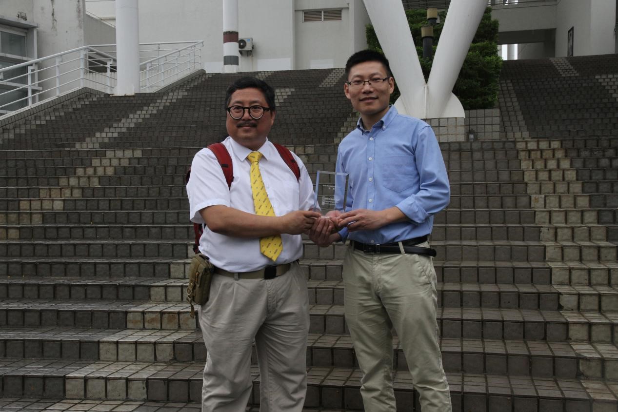 最后,众人在镜湖前楼梯上合影留念。香港表面处理学会会长刘利强先生向吴老师赠送礼品,并对新型真空镀膜工艺与装备组全体成员的热情接待表示感谢。