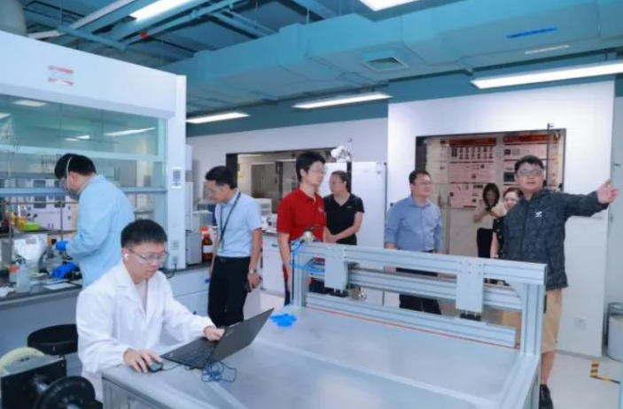 比亚迪集团代表首先在基金会秘书处/员工工作办公室副主任黄秀兰的陪同下参观了深研院位于南山智园的新材料实验室和汇丰商公司,实地了解了实验室和公司的建设情况。比亚迪集团代表表示,深研院已有多位老师与比亚迪有深度合作。面向全球市场,与高校展开全面合作是为企业持续提供创新性、竞争力的重要路径。