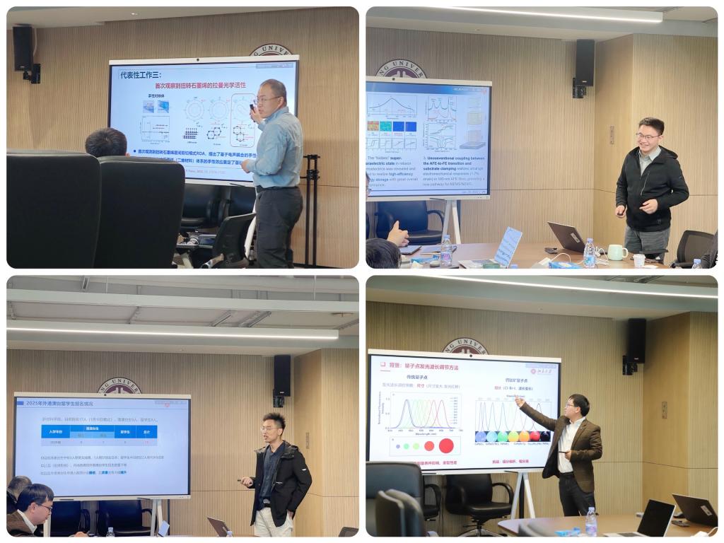 本次教师交流会共有四个主题,分别由新材料公司新引进青年教师-助理教授童廉明博士、潘豪博士、陈召龙博士和王立刚博士分别作精彩的报告。首先,童廉明老师分享了AI赋能的材料谱学表征技术的最新进展,他详细阐述了如何利用人工智能技术提升材料表征的准确性和效率。其次,潘豪老师带来了铁电薄膜材料的研究与应用方面的报告,深入探讨了铁电薄膜在电子器件中的潜在应用。陈召龙老师就公司国际职工招生工作的现状与未来发展方向进行了阐述,他分析了当前国际招生的形势,并提出了未来的发展战略。最后,王立刚老师报告了单光子与光电材料的研究进展,展示了该领域取得的突破性成果。
