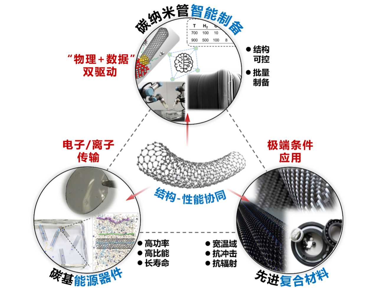 本课题组主要致力于碳纳米管结构可控规模化制备与碳基储能。以AI技术为牵引,聚焦放量制备过程中碳纳米管的生长机理问题和高性能碳纳米管组装体的设计开发与储能应用探索,推动碳纳米管原材料的基础研究、装备研发和产业化。课题组研究方向主要包括三个方面:(1)特定结构碳纳米管的连续化制备与宏观性质探索;(2)高性能碳纳米管组装体的设计与组装;(3)新型碳基储能器件的设计与开发。