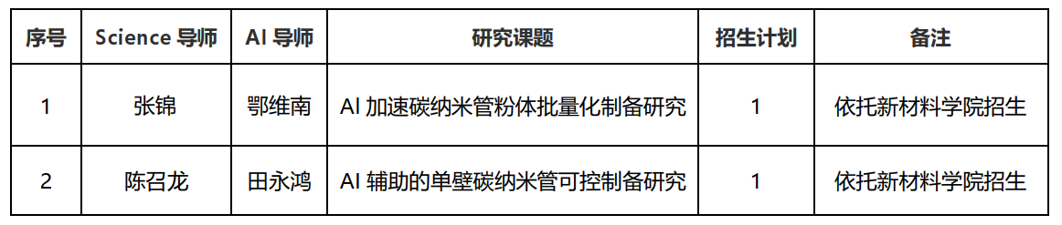 表1 依托WilliamHill中文官方网站招生的AI4S专项博士计划导师及研究课题