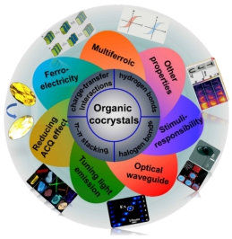 Organic cocrystals based on noncovalent intermolecular interactions (week interactions) have aroused enormous interest due to their unpredicted and versatile chemicophysical properties and charming applications (Figure 1). In this presentation, I will highlight recent emerging researches of organic cocrystals on reducing aggregation-caused quenching (ACQ) effect, turning transport characteristic, and mechanic(solvo)-stimulus responsive behaviors.