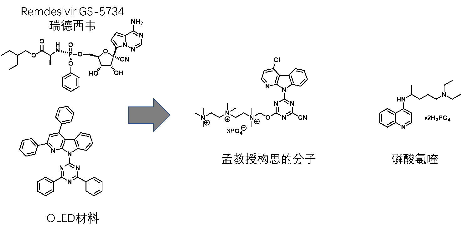 2 瑞德西韦,OLED材料,构思的分子结构和磷酸氯喹分子结构