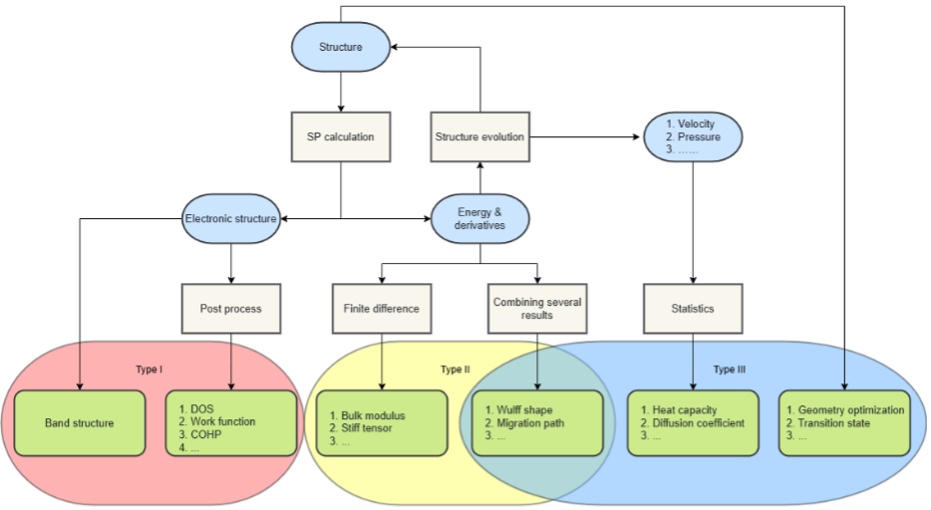 通过分层解耦架构,实现了计算任务的分层式流程优化。各层通过标准化接口交互,避免了传统软件依赖状态跳转以实现复杂算法的冗余设计,显著提升了新算法开发效率。软件原生支持多种不同类型计算,无须依赖VTST、VaspSol等第三方库,大幅降低了部署复杂度。