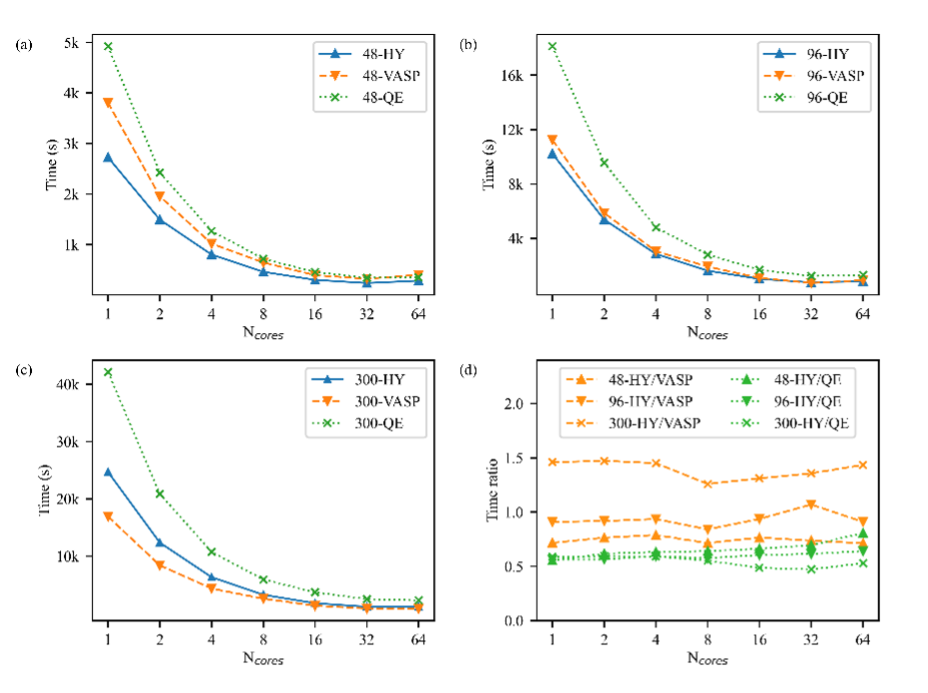 Hylanemos充分发挥了Julia语言的优势特性。在48/96个原子的LiCoO2体系测试中,展现出优于VASP和QE的计算速度;在300个原子的较大体系计算中,仍保持卓越的性能表现,验证了软件的高效并行计算能力。此外,自主开发的超软赝势(Eacomp PP)将传统USPP在锂电池正极材料计算中的截断能从24 Ha降至18 Ha,在保持精度的同时减少了30%的计算量。