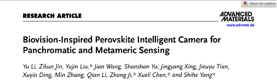 近日,williamhill官方网站深圳研究生院与西安电子科技大学的研究人员创新性地提出一种基于仿生视觉的多光谱融合策略。该策略依托团队自主研发的气液固喷涂技术(ALS),成功构建出覆盖紫外-可见光谱的七通道窄带钙钛矿光电探测器阵列,并结合深度学习颜色融合算法(MSCF-DNN),实现了通过单次拍摄捕获全光谱信息并准确还原RGB色彩的能力,为遥感监测与医学成像等领域提供了新的技术路径。相关研究成果以“Biovision-Inspired Perovskite Intelligent Camera for Panchromatic and Metameric Sensing”为题发表在国际学术期刊《Advanced Materials》。