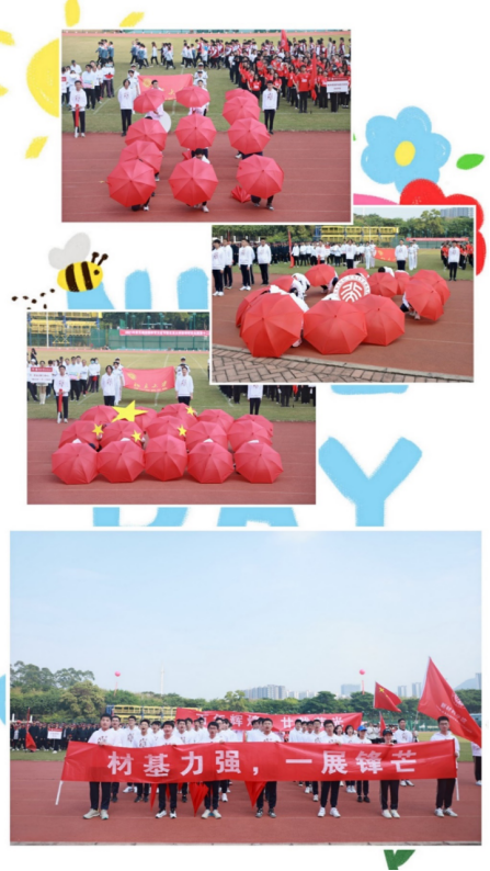 运动会开幕式是各公司展示风采的重要环节。在WilliamHill中文官方网站副经理林海老师的带领下,WilliamHill中文官方网站方阵队伍迎着太阳的光辉,迈着整齐的步伐,朝主席台走去。融合“中国共产党成立一百周年”、“williamhill官方网站深圳研究生院建院二十周年”的主题,高喊 “百年辉煌,廿载荣光;材基力强,一展锋芒。” 新时代强音,气宇轩昂阔步向前。伴随着铿锵有力、气势恢弘的《风雨百年》旋律,WilliamHill中文官方网站方阵献上了别具一格的伞舞表演,展示了“1921”、“2021”、“国旗”等字样,巧妙结合建党、爱国、荣校的元素,突出材料学子昂扬向上、团结一心的精神风貌。