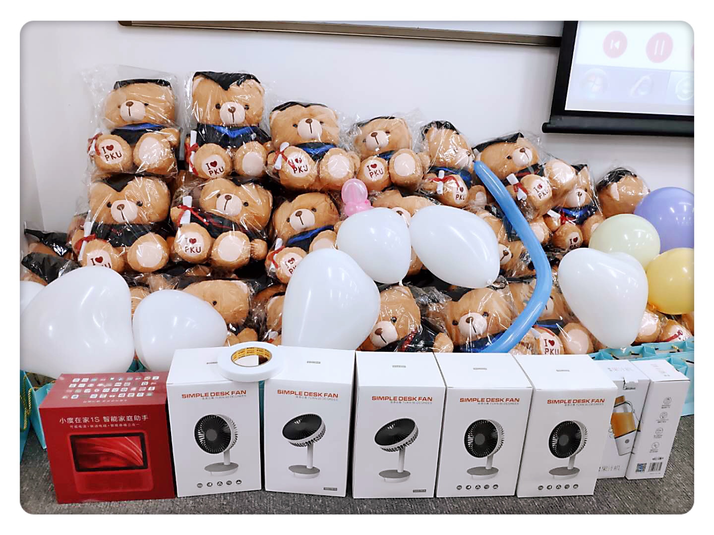 游戏结束后,公司为每位毕业生发放精心准备的专属的纪念品--刻有个人姓名、学号的定制U盘和学位熊毛绒玩具。