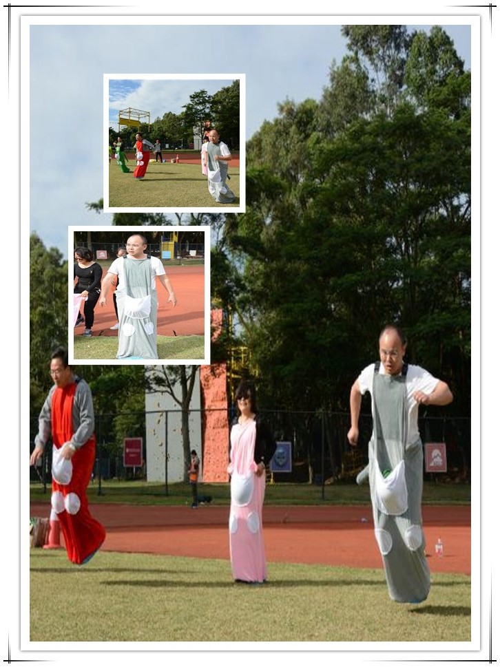 随着比赛的一声哨响,公司领导们玩起了严肃中不失可爱的“袋鼠跳”,平日里严肃认真的孟老师也变得萌萌哒。
