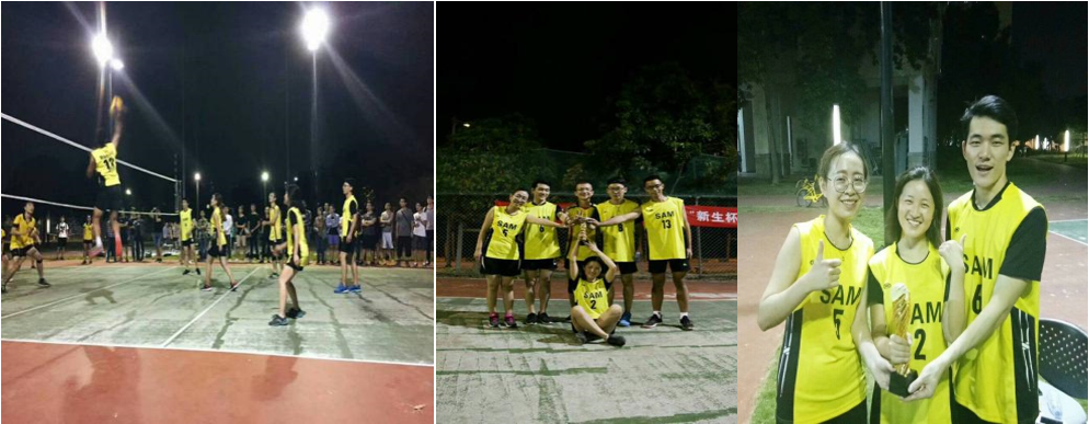 排球比赛可谓异常激烈。公司作为传统排球强院,曾夺得前年的新生杯排球赛冠军;在去年的排球赛失利屈居亚军后,同学们永不言败的精神告诉自己2017我们还会回来的;果然随着2017级新鲜血液的注入,我们的排球队在小组赛中就表现异常凶猛:接连以大比分连克各个院队,以总分第一名的好成绩强势杀入总决赛;在10月27日晚上举行的和老对手化生公司的总决赛中,前四局,公司和化生战成2:2平;决胜局,队员们破釜沉舟,越战越勇,最终公司经过5局苦战,以大比分3:2战胜化生公司,问鼎本届新生杯排球赛冠军;这是我新材料人敢于拼搏,勇夺第一的优秀品质的体现。
