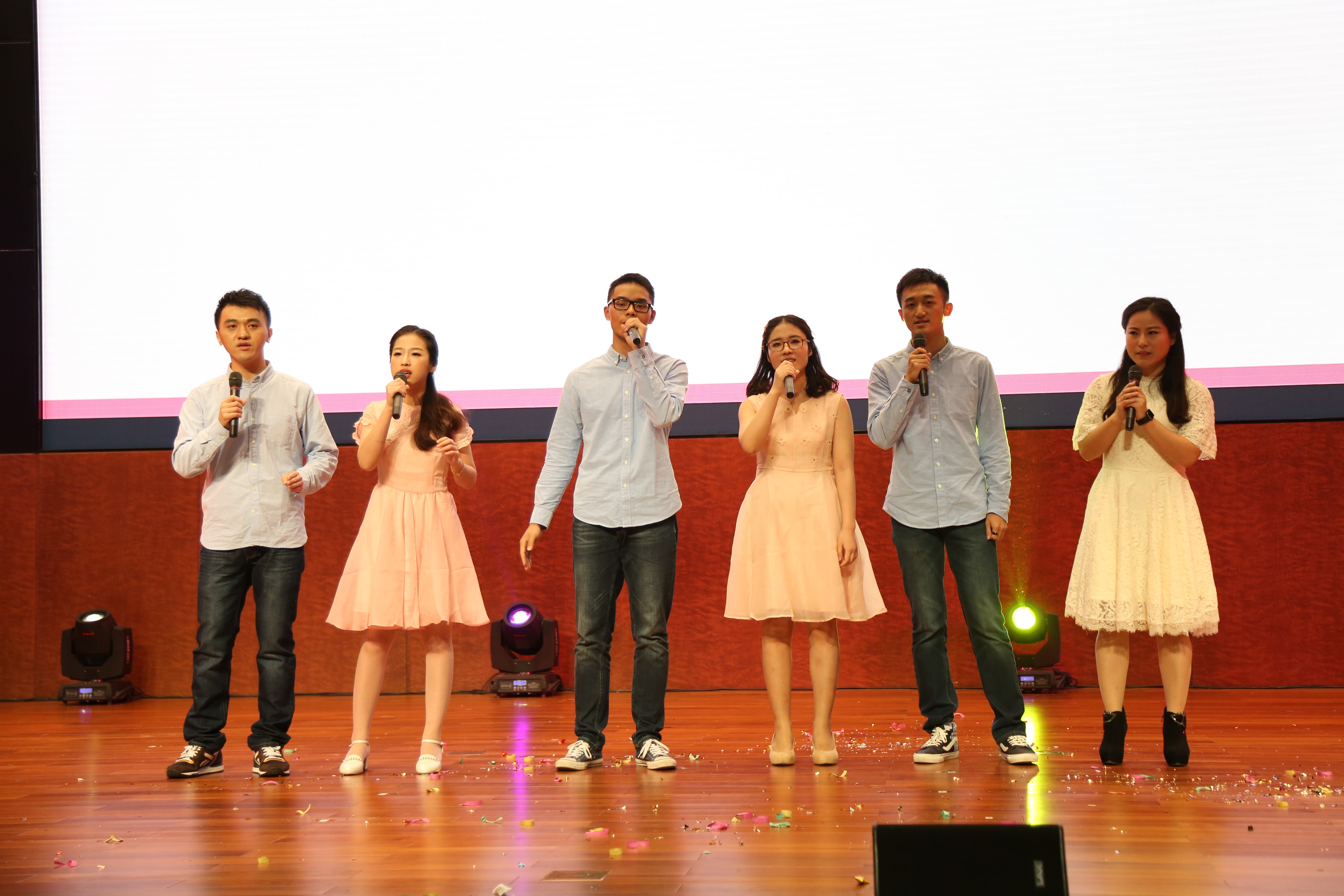 1月15日下午两点,活动正式开始。首先由深研院经理海闻教授做2015年工作总结及2016年工作改革与发展报告。报告结束后,团拜会正式开始。本次团拜会精彩纷呈,节目形式有街舞、小品、诗歌朗诵、大合唱等等。各部门、院系的教职员工纷纷亮相,一展风采。公司报送的歌曲串烧《我的少男、少女时代》作为倒数第二个节目压轴出场,共计14位师生参与表演。节目由五首歌串连而成,分别为《今天你要嫁给我》、《一个像夏天一个像秋天》、《朋友》、《小幸运》、《相亲相爱》。五首歌以爱情—友情—亲情为主线,充分展现了公司教职员工温馨和睦、相亲相爱的深厚情谊。