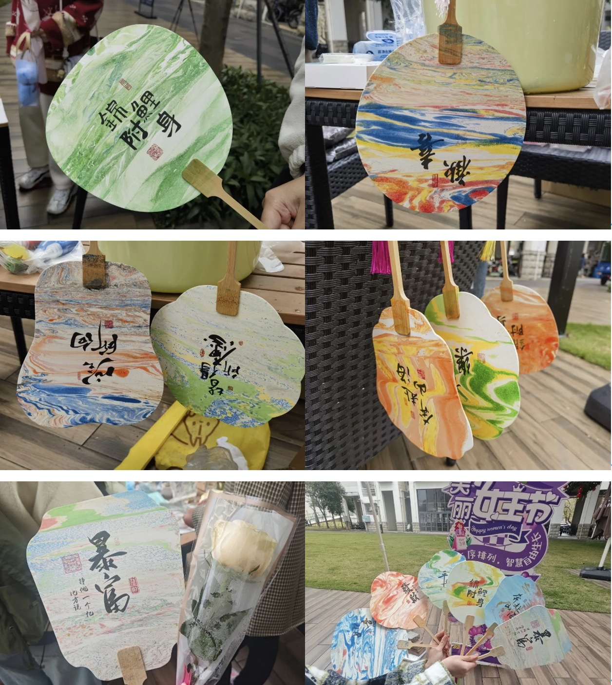 漆扇制作活动吸引了众多师生参与,现场笑语盈盈,彩漆流转生辉。在无限的可能性与想象力的加持下,一柄柄漆扇摇曳生风,皆是东方美学的指尖绽放。在主题打卡活动区,大家在相机的快门声中定格下灿烂的笑容,原来春意盎然中最美好的回忆,是此刻真实的我们。