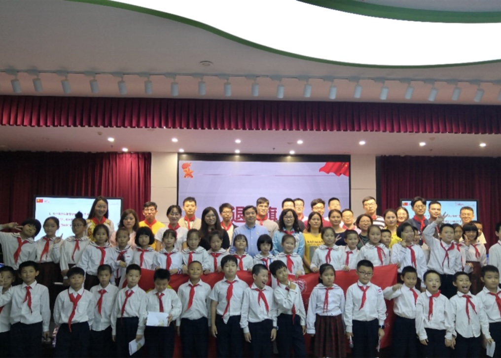图8 郑世胜(后排右一)到小学开展科普宣讲