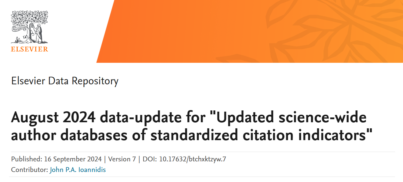 9月16日,由斯坦福大学John P. A. Ioannidis教授团队发布的全球前2%顶尖科学家榜单更新了2024年版本,这也是该团队公布的第七版本。该团队基于Scopus数据库,提供总引用量、h-指数、共同作者修正的hm-指数、不同作者位置的引用及综合指标(c-score)等标准化信息。考虑到不同研究领域的差异,该榜单将科学家划分为22个领域和174个细分子领域,力求为科学家长期科研表现提供一个衡量指标,以期能够更客观、更真实地反映科学家的学...