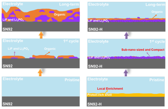 公司潘锋团队基于富质子界面的原位转化形成致密无机壳层开发了高性能的三元锂电池正极材料