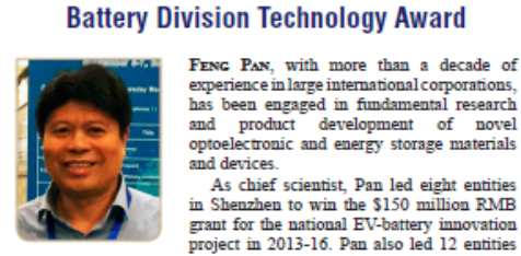 WilliamHill中文官方网站潘锋教授获美国电化学会电池科技奖